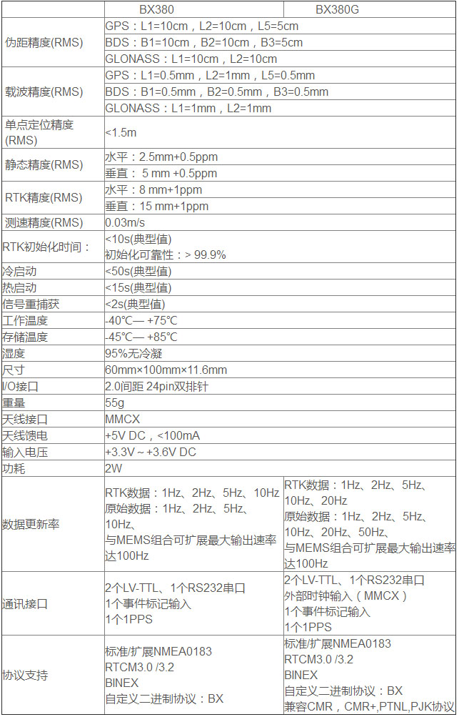 支持BDS(B1/B2/B3)、GPS(L1/L2/L5)、GLONASS(L1/L2),通过软件升级扩展可同步接收GALILEO星座和SBAS卫星信息。